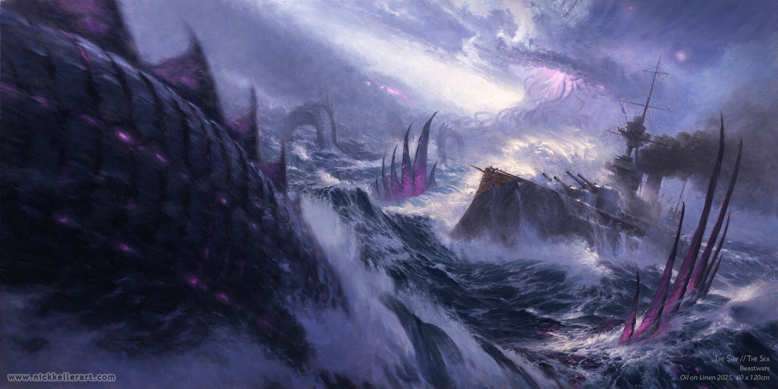 Album cover art for Beastwars' sixth studio album, "The Ship // The Sea". Oil on linen painting, 60 x 120cm.